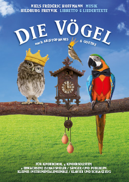 Die Vögel nach Aristophanes und Goethe. Für Kinderchor, 4 Kindersolisten, 2 Erwachsene (Schauspieler / Sänger und Publikum. Kleines Instrumentalensemble / Klavier und Schlagzeug. Text Hildburg Freynik.